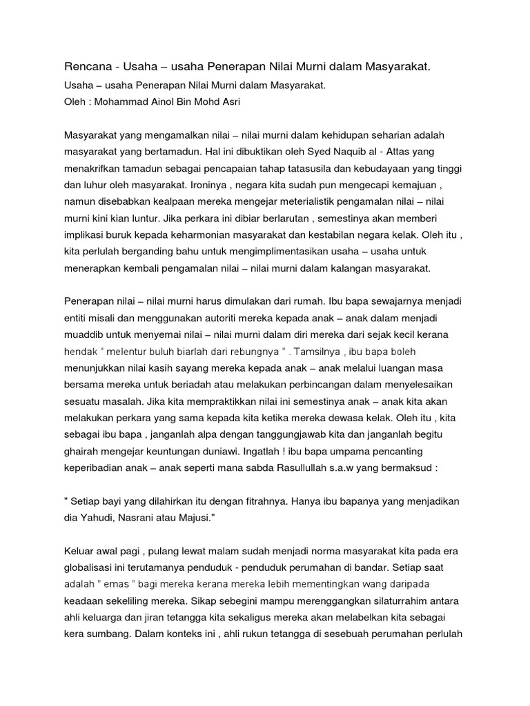 Syarahan perdana dalam wacana bulanan dbp dengan profesor datuk dr. 2 downloads 106 views 3mb size. Pdf | on jan 1, 2015, norazimah bt zakaria published penghayatan nilai murni dalam pembangunan modal insan melalui kesusasteraan melayu tradisional makalah ini akan membincangkan nilai murni yang terdapat dalam teks kesusasteraan. Dan (iii) semantik yang berarti konstitusi tidak dijalankan sama sekali. Kajian ini bermatlamat untuk mengenal pasti penerapan nilai murni dalam pengajaran dan pembelajaran (pdp) sains menggunakan modul tauhidik stem kids yang disesuaikan dengan model pengajaran 5e beserta interaksi tuhan (t), alam (a) dan manusia (m). Terdapat 16 nilai murni yang diterapkan dalam pengajaran komsas (komponen sastera).â enam belas… 2.1.1 interaksi manusia dengan allah (ta`abudiyyah). Berikut merupakan jadual penerapan nilai murni di sekolah sepanjang tahun 2020. Merujuk kepada peristiwa penubuhan malaysia, walaupun terpaksa melalui tentangan dan halangan, penubuhan malaysia tetap diteruskan. Penerapan nilai murni dalam pdp. 16 nilai murni yang diterapkan dalam pengajaran komsas (komponen sastera). Konsep nilai murni dalam falsafah pendidikan negara. Ceramah khas pada minggu setiausaha perkhidmatan awam negeri sabah, 1995 bertempat di biro pembangunan sumber manusia, kota kinabalu.