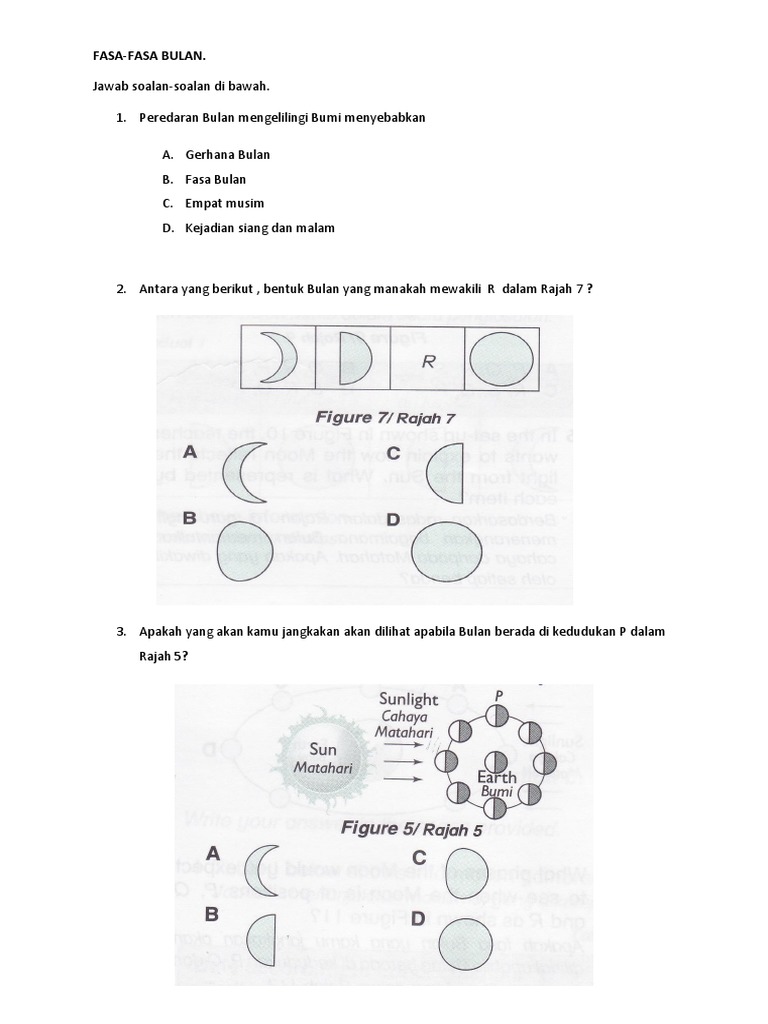 Lazimnya terdapat satu keperluan tambahan yang mana setahun mesti terdiri daripada. Oleh itu, cahaya bulan yang kita lihat sebenarnya adalah c dua belas bulan yang menjadi takwim kalendar manusiacahaya matahari yang telah dipantulkan oleh bulan. Rajah 5 berdasarkan takwim qamari, fasa bulan yang ditunjukkan di atas boleh dilihat pada hari ke _____ dalam bulan tersebut. Secara umumnya,kemunculan fasa bulan berdasarkan takwim qamari adalah seperti berikut: For more information and source, see on this link :